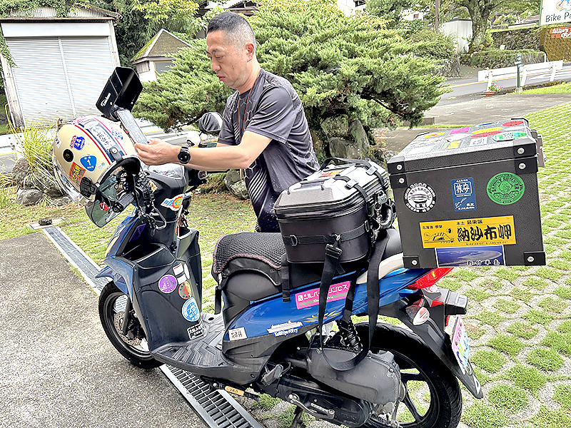 上、左/アドレス125で全国を駆け巡る!(9/14朝)上、右/若い二人もアドレス125さんも、今日は伊豆を巡る計画のようです。(9/14朝) 下/時々強く降る雨の中を来てくれました。(9/13) |