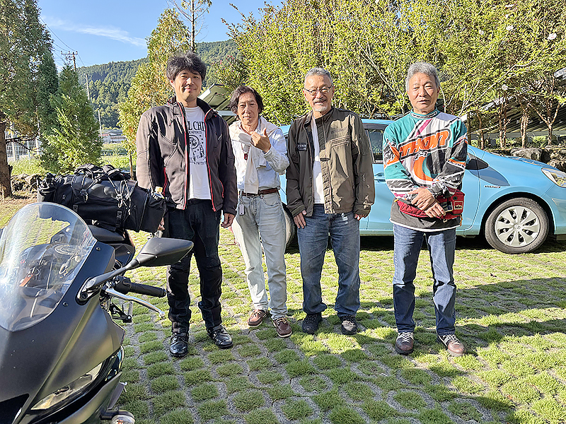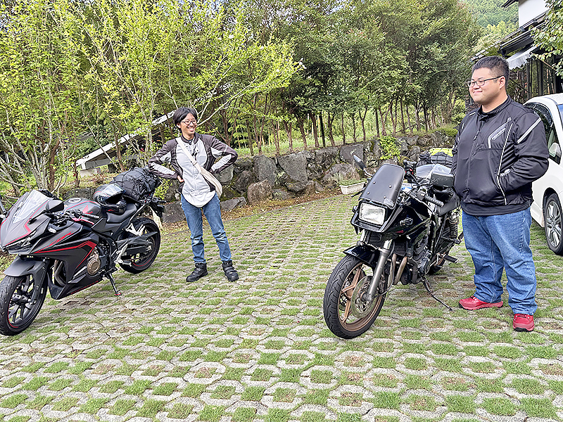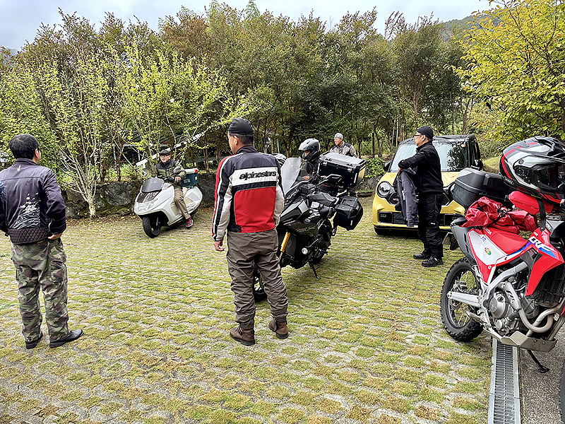 ![]() FZR1300さんは大阪から、CB1100さんは東京から。2人ともリピーターですが初めての出会いです。(ともに11/9朝) |