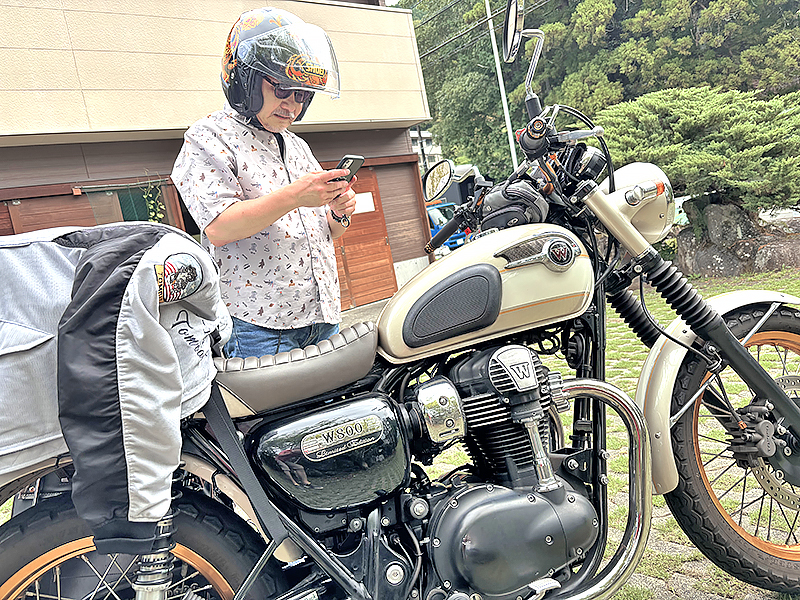 Bike Packでは珍しい富山ナンバーのW800。新湊の漁協に努めているそうで、普段は聞けない競りなどの話を興味深く伺いました。(7/3朝)