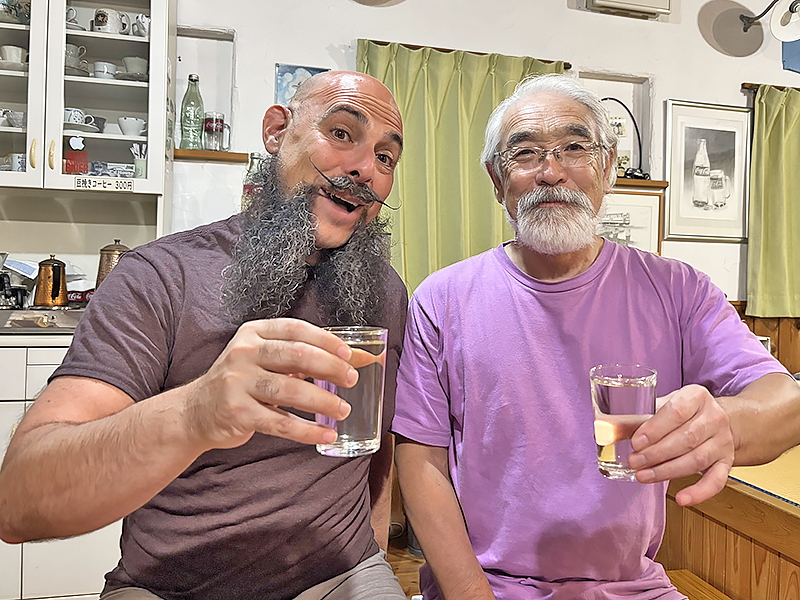 ![]() 左/「一緒にのみましょう」と言って彼女が持ってきてくれたのは『ニッカウヰスキー、セッション』。 右/女同士で語り合いたいことがあったのでしょうか、Bike Packの奥さんとの対話「セッション」が続きました。(2枚とも7/19) |