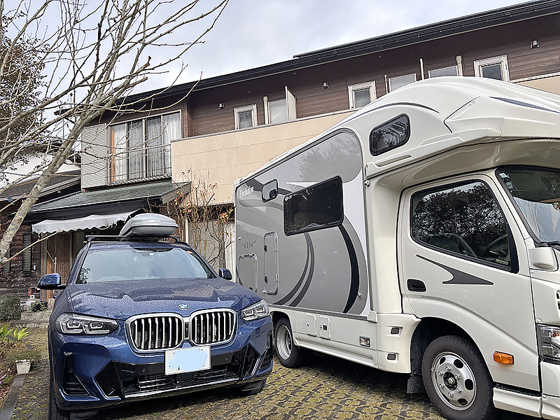 ![]() 左/6人グループが到着したら、中に大きなトライクが2台も! その2台とあとのバイク4台をガレージに上手に入れて。(5/21) 右/雨の予報でしたが早朝のうちに上がってくれました。(5/22朝) |