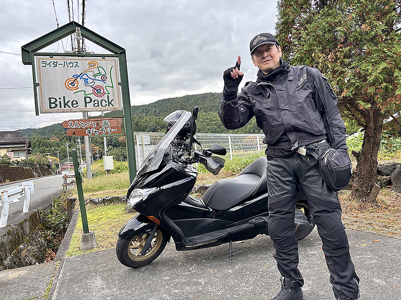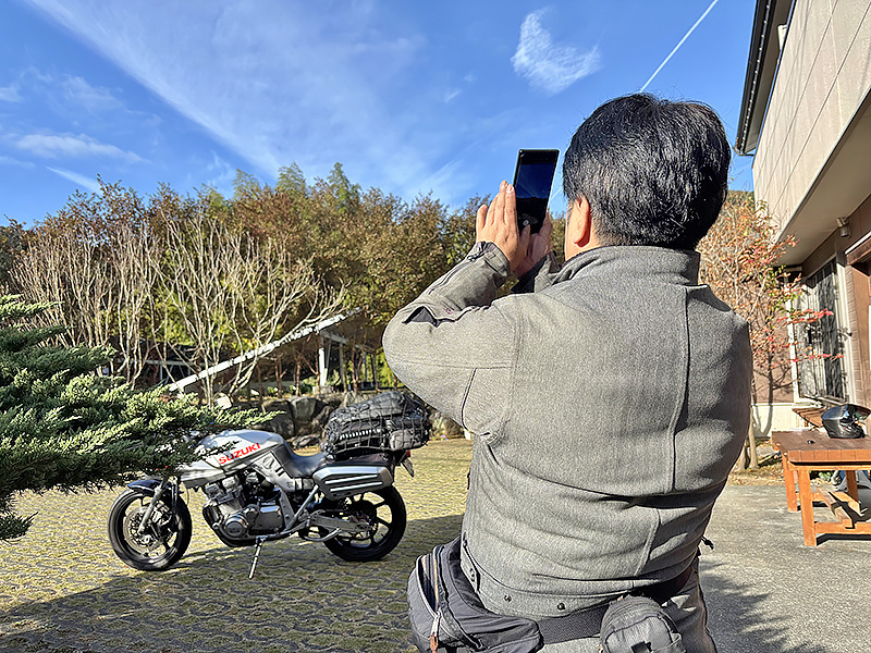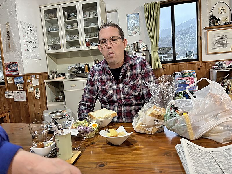 CB1100さんはBike Packは3度目のご利用。昨夜は1杯やりながら、とりとめもなく様々な話題が広がりました。(写真は4/26朝)
