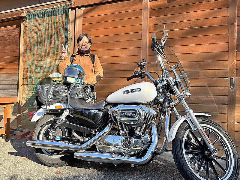 小柄な女性ながら1200tのハーレーで。(11/17朝) |