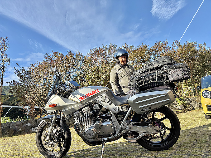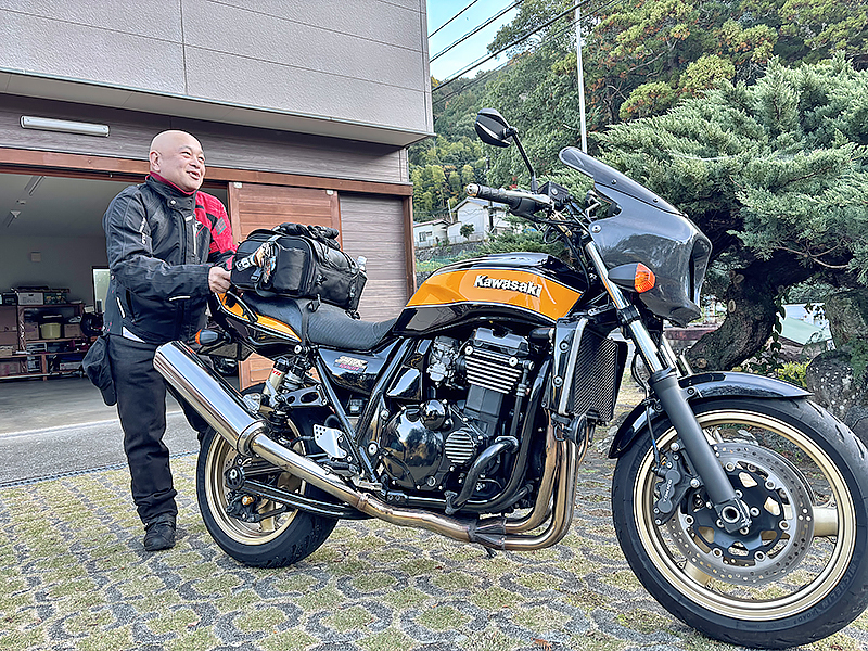 上/すばらしい青空になりました。下/KAWASAKI ZRX1200。2人ともBike Packは初めてです。(11/23朝) |