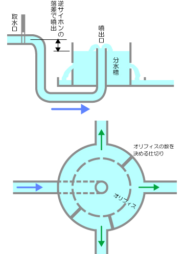“鷽(うそ)の口”円形分水 2017/9/21 長野県佐久穂町 Bike Packをご利用くださるお客さんの中にはスタンプラリーや朱印帳、ダムカードなどを蒐集しながらツーリングしている人が少なからずいます。それはツーリングの動機であったり途中の楽しみでもあったりする訳です。私(Bike Pack)はというと、何かを集めたりはしていませんが、ツーリングの途中で「円筒分水」を訪問することがあります。 このビデオは9/21に麦草峠ツーリングのついでに立ち寄った長野県佐久穂町の『鷽(うそ)ノ口円形分水』の様子を1分のビデオにまとめたものです。 現地の説明板では「円形分水」と言っていますが、ほかに「円筒分水」または「円筒分水工」とも呼ばれているものです。私としては・・・構築物ですから「円筒分水工」という呼び名のほうが合っているような気がします。 「円形分水」は農業用水を複数の地域に、それぞれ定められた割合によって公平に分配するための装置です。全国各地にありますが、ダムの数に比べればまったく少ない施設です。昔むかし、こんな技術がなかったころは水を公平に分けられずに「水争い」が起こったそうです。 原理は・・・取水口から取り入れた水を「逆サイホン」で中央の口から噴き出して円筒プール(分水槽)に貯め、プール側面の小さな穴 (オリフィスといいます) から円筒外側の水路に放出します。ここではオリフィスは47か所あるそうですが、これを例えばAの村には28か所、Bには13、Cには6と定めて正確に公平に分配するという装置です。オリフィスではごみが詰まることがあるので、オリフィスを開けずに水を円筒プールからあふれさせてそれを分配している円筒分水工もあります。昨年7月に紹介した「徳水園円筒分水工」などがそうです。 興味を持たれた方は『円筒分水ドット・コム』 というサイトがありますので参考にされたら良いでしょう。 |