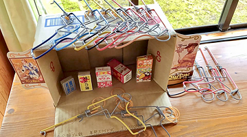 針金輪ゴム銃 2018/10 輪ゴムを飛ばして的に当てる、子ども(のような大人)のオモチャです。 これまでに200丁以上作ってきましたが、しばらく休んでいて先日久しぶりに作ってみたら手順を忘れていたり要領が悪かったり・・・。こういうものはあまり間を空けずに作り続けていないといけないなぁと。 この輪ゴム銃は単発ですが「連発銃を」という要望もあって考えてはいるのですが、これがなかなか難しい。ネットで調べてみたら、よく工夫された連発銃もあるのだけれど「欠点」もあったりして、これとは違ったオリジナルの仕組みを生み出すというのは、たかがこんな針金ごときのオモチャでも難儀なことです。 |