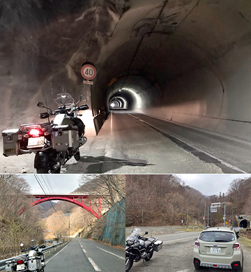 仙人峠/岩手県 2019/5 仙人峠は国道283号線の釜石市と遠野市の境にかかる峠で、全長2.5kmの古いトンネルで越えます。H19年3月にこの峠道のバイパス「仙人峠道路」が開通して、旧来の峠を通る車は激減した。 4月、この古い峠を釜石側から走ってみました。峠への登りは狭く、また険しいので平仮名の「の」の字のように道がループして写真にした赤い橋を渡ります。トンネルを抜けた先の広場に、観光地でもないこんな所に、自分と同じ「伊豆ナンバー」の車が停まっていて驚きました。 三陸は新しい道が整備されて利便性が格段に向上しました。それらの道はツーリングでも時間短縮には役立つでしようが、走って新旧どちらが楽しいかと問えば、バイクにとっては旧道のほうが楽しく思えます。 |