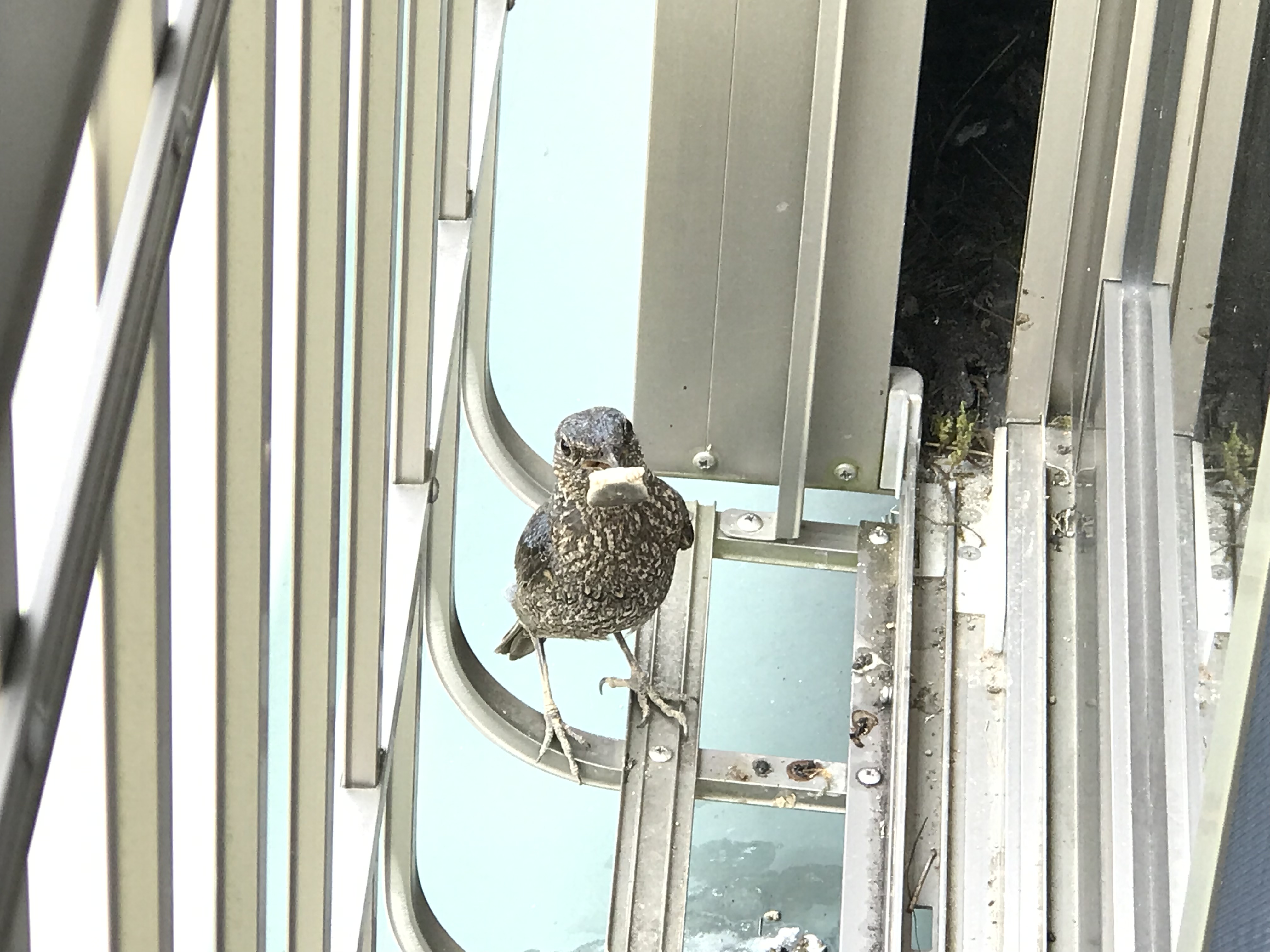 長期滞在者 2023/6 この鳥はイソヒヨドリの雌です。小さなカエルや虫をくわえてBike Packの2階の窓の手すりに何度もやって来るのでしばらく観察していると、雨戸の戸袋の奥に雛が6羽もいるのを見つけました。 この地味な色の雌とは違って雄は青い綺麗な色をしています。時々庭に来ますが、子育てはもっぱら雌にまかせて「放棄」しているもよう。 「ヒヨドリ」という名前が付いてはいますがヒヨドリの仲間では無くてヒタキの仲間だとか。また、「イソ」とあるようにもともとは海岸などに棲んでいたそうですが、近年は市街地でも珍しくないようです。 |