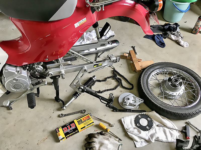 ![]() チェーン交換 2023/5 SUPER CUB110「レイコ号」と CUB PRO「郵政号」の、チェーンと前後スプロケットを新品に替えました。 2台ともドライブスプロケットは14Tが標準ですが15Tに変更しました。ドリブンは共にノーマルのまま。さて、どんな走りになるでしょうか。車庫でしゃがんで作業しているので腰が痛い! 最後に締め忘れの無いように注意しなければ。 |