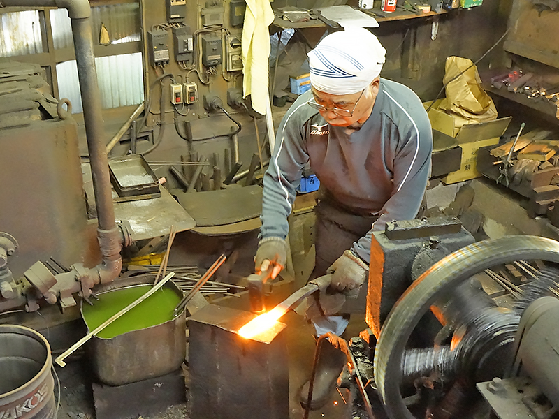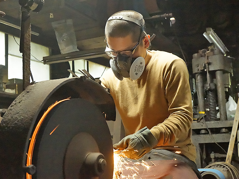 村の鍛冶屋 2023/8 訪れたのは7月の初めです。新潟県長岡市の『水野鉋(かんな)製作所』にお邪魔しました。2泊3日のツーリングも兼ねて行った訳ですが1泊目は南魚沼市の『萌気園さくり温泉 健康館』に宿泊し、2泊目は長野県飯綱高原のライハ『ハヤテ』に厄介になりました。その2日目を製作所の写真撮影に費やしたのです。 水野鉋製作所訪問の目的は鉛筆画の題材としての写真撮影です。これまで描いてきた鉛筆画はバイクのような無機質なものが多かったのですが、こうして人が働いている姿こそ描きたかった題材です。写真右の彼はまだ見習いですが、若いので彼にメールで連絡を取り、伺いたい旨伝えて親方の許可もいただいて訪問した次第です。私自身も若い時には機械工場に勤めていましたから、こんな現場はワクワクします。 新潟・長野から帰宅して、たくさん撮影した中から1枚を選び編集して鉛筆画にすぐに取り掛かりました。今日−−−8月末で2ヵ月近くなりますが進捗は面積比で6割程度です。「相手」は年配の熟練の職人さんですから、描いていて緊張を覚えます。 |