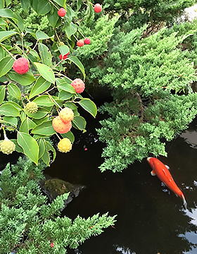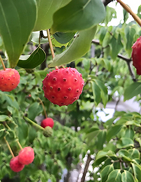 恐るおそる食べてみた 2022/9 この赤い実は “ヤマボウシ”(山法師)の実です。大きさは直径2〜3cm。毎年5月には白いきれいな花が咲き、花の中心にある「実」が9月の初め頃から大きく赤く熟して落下します。 先日もお客さんから「食べられるか?」という質問がありました。それまでは無関心でしたがネットで調べたら食べられるという事を知り、外見も中身も余り気持ちの良いものでは無いのですが恐るおそる食べてみました ネットの記事では甘くて熊の好物とあり、鳥も好きなんだとか。皮は食べません。中の黄色いジュクジュした所をすすって食べてみると・・・なるほど甘い。酸味は無い。ただ、美味しいと言える程でも無い。2粒食べてや止めました。大きな種が3粒ほど入っていたので、サクランボのようにプッと出します。 枝が鯉の池にかぶさっているのでヤマボウシの実が時々池にも落ちます。ちょうど落ちたところを見ていると鯉が飲み込んでしまいました。鯉は異物を食べると直ぐに吐き出すのですが、この実は吐き出さずにいるので、えぇ〜、食べちゃったのでしょうか・・・!? しばらく見ていると、実を半分食べて残りは吐き出しました。 |