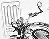 BMW R nine T モトラッド100周年記念モデル 100周年記念の特別仕様車です。ヘルメットのルビーに色を入れました。 絵の大きさは、前輪と後輪の端から端までが47cmです。 KMKケント紙 ( 2054/7 ) |