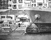 建造中の第一明神丸/静岡市清水区三保造船所 静岡市清水区の(株)三保造船所で建造中の、宮城県女川町鈴幸漁業(株)所有のマグロ延縄漁船第一明神丸です。(すでに2012年10月に三保造船から鈴幸漁業に引き渡されて気仙沼港に回航し、現在は遠洋に出て操業中。) 2011年3月11日の東日本大震災で先代の第一明神丸は気仙沼港で火災に遭い廃船となったそうですが、翌2012年、三保造船所において同じ名前で再建されました。 イメージの中で“漁船を建造する”ということと“三陸を復興させる”ということが重なり、復興を祈念して制作したものです。原画は鈴幸漁業に進呈しました。 Bike Pack にあるのは複製です。 ヨコ66×タテ50cm KMKケントボード ( 2013/6/29 ) |