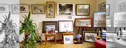 ●原画を館内に展示しています。ぜひ見に来てください● これらの鉛筆画は、ライダーハウスの「小使いさん」が飽きもせずコツコツとかきためたものです。 |