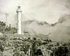 休日の魚市場/宮城県気仙沼港 フォークリフトが走り回った跡に、きのうまでの喧騒の余韻が感じられます。 タイヤ跡の微妙なところなどは、機会があればぜひ原画を見ていただきたいものです。 ヨコ43×タテ32cm KMKケント紙 ( 2007/12/11 ) |