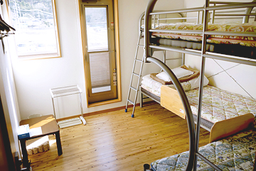 二段ベッドですが快適にお休みになれると思います。 シーツや布団などは用意してありますが、寝間着代わりの着替えは持参してください。 幼児の寝具は持参してください。 各部屋の定員は4人です。 |